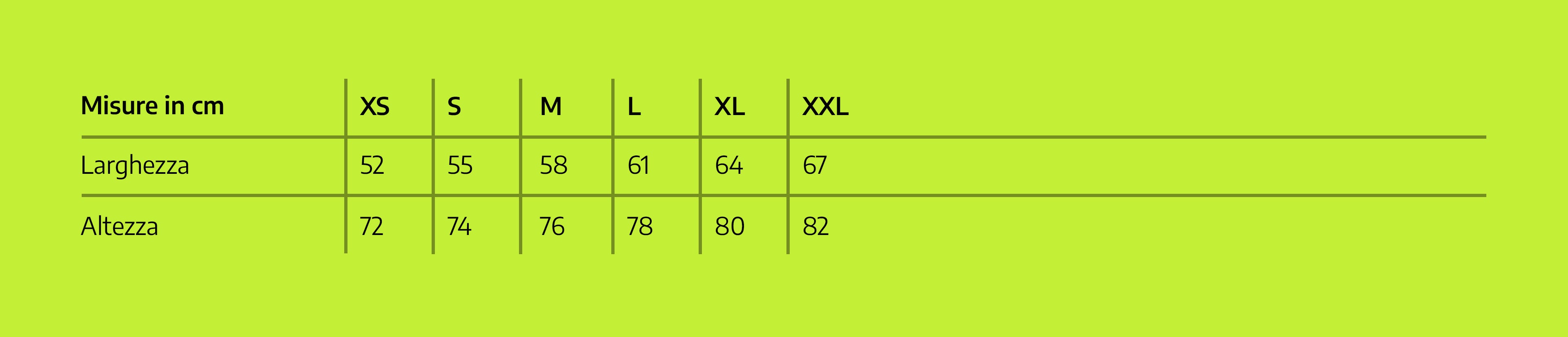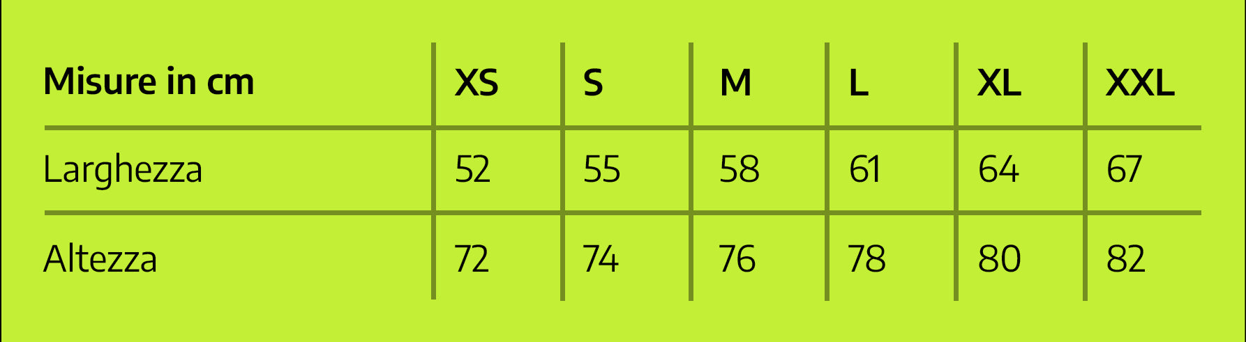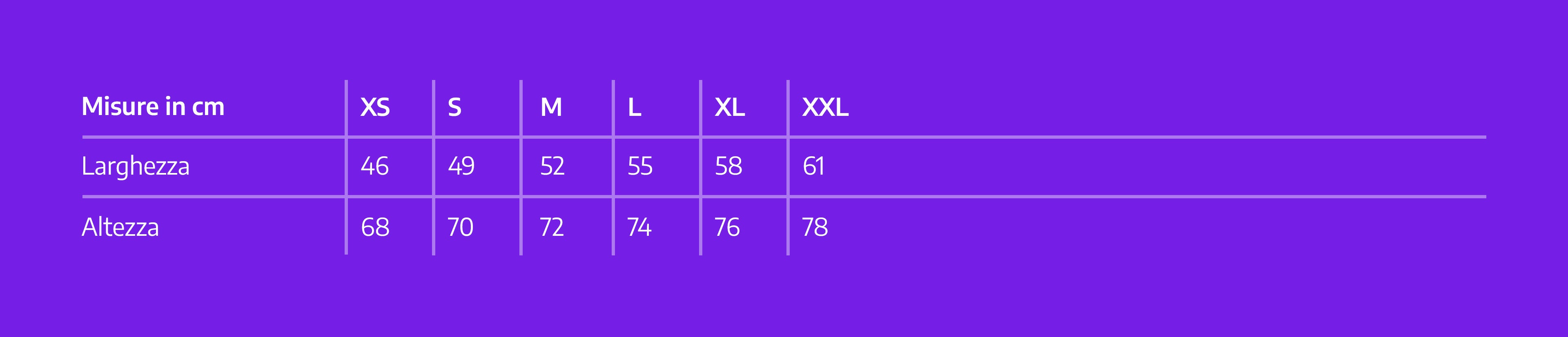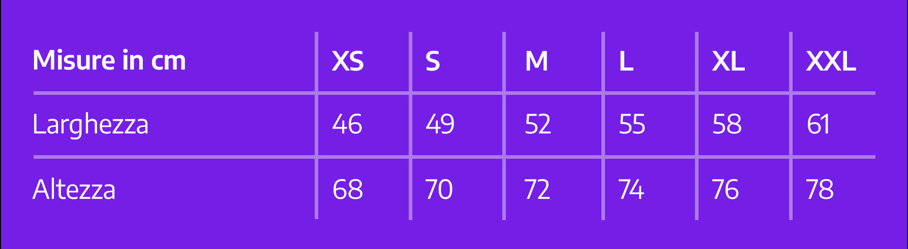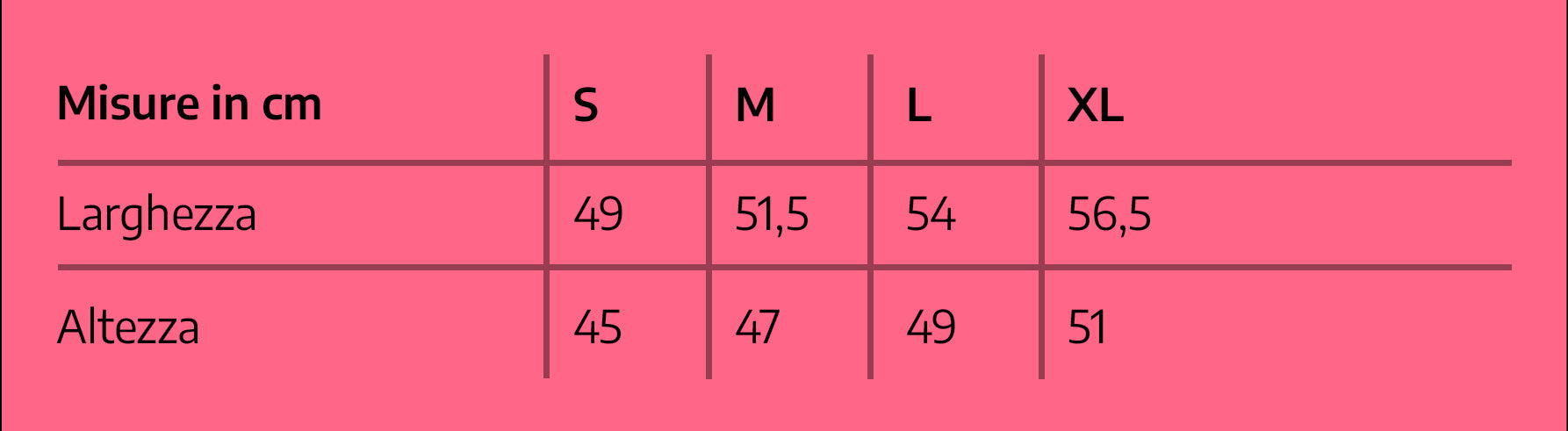 Siccome non c’è un limite alla pignoleria, ti anticipiamo che le misure si riferiscono alla maglia (non a quelle del corpo) e hanno una tolleranza standard di +/- 1.5 cm circa.